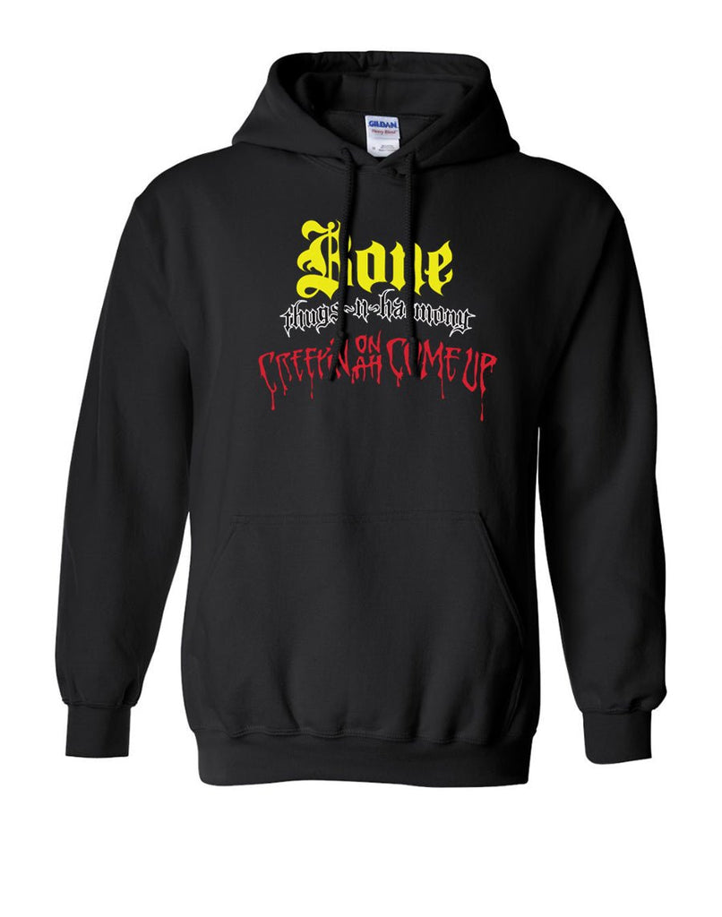 Limited Edition Bone Thugs n Harmony - Creepin on ah Come Up Heavyweight Black Hoodie with the iconic Bone Thugs n Harmony Logo screen printed, in Yellow and white, on the front. A must have classic Hoodie sweatshirt to keep you warm and fresh throughout the fall/winter.