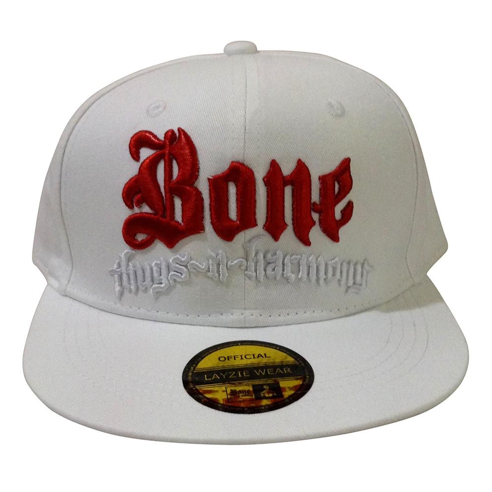 Authentic Limited Edition Bone Thugs n Harmony Hat, White color with Red and White embroidery stitching. Official Bone Thugs n Harmony Snapback Hat Exclusively at LayzieGear.com